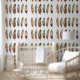 Peel en stick behang blauwe bruine veren behang. Huurders huiseigenaren interieurontwerpers kunnen creëer een gepersonaliseerde look voor elke kamer