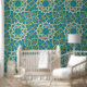 Peel en Stick Wallpaper Blauw Grafisch cirkelenpatroon. Huurders huiseigenaren interieurontwerpers kunnen creëer een gepersonaliseerde look voor elke kamer.