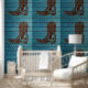 Peel en Stick bruin cowboylaars western blauw hout Behang