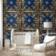 Peel en Stick Wallpaper Indisch geïnspireerd ontwerp Rich Blue Gold Squares Wallpaper. Groot gemakkelijk doe-het-zelf project voor huurders huiseigenaren interieur ontwerpers. Creëer Een gepersonaliseerde look voor uw huis appartement kantoor of bedrijf. Versier muren plafonds meubels hoofdeinde keuken backsplash deuren of opslag containers. De mogelijkheden zijn eindeloos. Verkrijgbaar in getextureerd en glad vinyl. Maten 2'x4' 2'x8' 2x10' en 2'x12'.