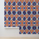 Verwijderbare Peel Stick Artdeco Tegels Patroon Blauw Sinaasappel Geometrisch behang. Geweldig eenvoudig doe-het-zelfproject voor huurders en huiseigenaren. Creëer Een gepersonaliseerde look voor uw huis appartement slaapzaal of bedrijf. Decoreer muren plafonds meubels. Verkrijgbaar in getextureerd en glad vinyl. Maten 2'x4' 2'x8' 2x10' 2'x12' en 2'x1' staal.