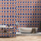 Verwijderbare Peel Stick Artdeco Tegels Patroon Blauw Sinaasappel Geometrisch behang. Geweldig eenvoudig doe-het-zelfproject voor huurders en huiseigenaren. Creëer Een gepersonaliseerde look voor uw huis appartement slaapzaal of bedrijf. Decoreer muren plafonds meubels. Verkrijgbaar in getextureerd en glad vinyl. Maten 2'x4' 2'x8' 2x10' 2'x12' en 2'x1' staal.
