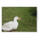 Een afbeelding van een witte pekin-eend die over het groene gras loopt met haar rekening open, smeekt om je eigen onderschrift! Voeg tekst in "pas"menu-wit of geel toe kijkt groot in het groene grasgebied!