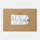 Moderne boerenboerengepersonaliseerde doormat met je familienaam in je staatskaart. Faux burlap canvastextuurachtergrond. Klik op Aanpassen om uw eigen tekst en afbeeldingen toe te voegen en een uniek ontwerp te creëer!