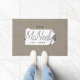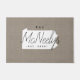 Moderne boerenboerengepersonaliseerde doormat met je familienaam in je staatskaart. Faux burlap canvastextuurachtergrond. Klik op Aanpassen om uw eigen tekst en afbeeldingen toe te voegen en een uniek ontwerp te creëer!