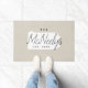 Moderne boerenboerengepersonaliseerde doormat met je familienaam in je staatskaart. Faux burlap canvastextuurachtergrond. Klik op Aanpassen om uw eigen tekst en afbeeldingen toe te voegen en een uniek ontwerp te creëer!