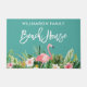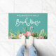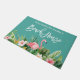 Modern Brush Script, Waterverf Tropische Bloemen met Roze Flamingo Familienaam Strandhuis Deurmat