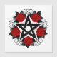 Zwart pentagram met patroon, versierd met bloemen, rode rozen met bladeren op witte achtergrond. Tattoo stijl.