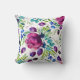 Moderne bloem in magenta, paars, blauwgroen, groen en blauw van een oorspronkelijke waterverf. Witte achtergrondshows van de helder gekleurde pinda's, bloemknoppen en plantaardig en bladeren. Profiteer van de ontwerpoptie om het ontwerp op grote schaal weer te geven of de kussen af te draaien voor een kleinere versie van het ontwerp!