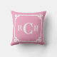Peony Pink Reverse Chinoiserie Greek Key Monogram Kussen