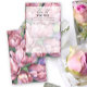 Waterverf retro stijl! roze pioenbloemen thema vrijgezellenfeest kaart met waterverf illustratie van boeket pioenrozen met groen. Elegant kalligrafisch handschrift, dat perfect is voor lente-, zomer- of herfstbruiloften.