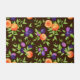 Grieks plantaardig patroon en plantgoed van vruchten, perziken en pruimen met groene bladeren. Oranje en rode perziken, donkerblauwe en paarse pruimen en magenta pruimen. Kleurt pop op donkere achtergrond. Cute, speels, vet patroon.