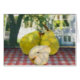 Een sappige peren zitten op de picknicktafel onder de geappldeerde schaduw van een boom. Het origineel is een miniatuurschilderij van Kathie Miller