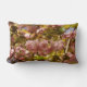 Perfect kussen voor de lente. Roze Kersenbloesems tegen blauwe lucht. Lumbaal kussen. Zelfde ontwerp voor en achter.