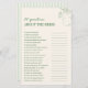 Vier het bruidspaar met dit Perfect Pear-vrijgezellenfeest 20 Vragen over de Bride-spelkaart, met handgetekende peren, groene accenten en elegante scripttypografie. Een leuke manier om te testen hoe goed gasten de bruid kennen, dit peer thema douche spel vonkt gelach en zoete herinneringen op rustieke, boerderij, of tuin-geïnspireerde evenementen. Ideaal voor het voorjaar en de zomer feesten, dit vrijgezellenfeest activiteit kaart coördineert met bijpassende uitnodigingen, welkomstborden, en peer decor.