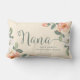 Deze stijlvolle kussen hebben een zachte perzikachtergrond met subtiele witte poka stippen, en trendy perzik en witte bloemen met veel groene bladeren. Het woord "nana"verschijnt in prachtig handgeschreven manuscript, en er is een plaats om met jouw naam te personaliseren.