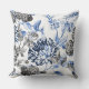 Periwinkle Blue Black White Botanical Floral Toile Kussen
