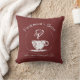 Vintage kijk hoofdkussen met een koffiemotief. Het hoofdkussen van Bourgondië met een doorstaan ontwerp van het koffieteken.