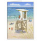 Op een drukke zonnige namiddag zoekt een eenzame badmeester de kustlijn van zijn houten uitkijkpost. :: Oorspronkelijke Waterverf van Barbara Bayer