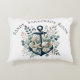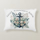 Wit Kussen Nautisch anker met zeesterren, schelpen en bloemen, Witte achtergrond. Gepersonaliseerd met een naam. Perfect voor een strandhuis, een kamer met een oceaanthema en een inrichting aan de kust aan het water.