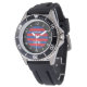 Een moderne trillende rode en blauwe horizontale achtergrond van de strependruk voor een fijn douane gepersonaliseerd de giftidee van het modehorloge.