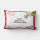 Dit gepersonaliseerde kerstkussen is een kerstbrief die u kunt personaliseren met uw familienaam in het gebied van het terugkeeradres en u kunt uw eigen kerstadres of vrolijk kerstbericht maken in het gebied van het verzendadres. Dit ontwerp is een rode rand envelop met sneeuwvlokken, twee kerst postzegels, en drie poststempels. Een super schattig kerstkussen om het kerstseizoen te vieren met feestelijke feestvreugde.