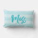 Kussen met "Miss" in blauw penseelscript tegen een preppy blauwe strepen patroon achtergrond. Personaliseer het door de tekst van de tijdelijke aanduiding te vervangen. Voor meer opties, zoals het wijzigen van het lettertype en de grootte van het lettertype, klikt u op de knop "Aanpassen". *Houd er rekening mee dat het Zazzle Watermerk dat in de zoomvoorbeeld wordt weergegeven NIET op het uiteindelijke afgedrukte product wordt weergegeven. © Rozenhout en Citrus