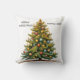 A beautifully decorated Christmas tree adorned with colorful ornaments and glowing candles. The tree stands on a patch of snow, its rich green branches full and lush, creating a warm and festive holiday feeling
