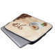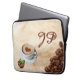 Featuring a soft coffee-colored background, scattered coffee beans, a steaming cup of coffee, and customizable owner initials, this sleeve is perfect for coffee lovers who want their laptop to reflect their personality.