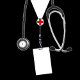 Doctor keepsake gift ornament featuring black hospital scrubs. To personalize edit text to add name and year.