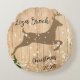 Personalized doe Christmas bauble wooden backgroun Rond Kussen