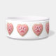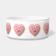 Treat your pup with this custom ceramic dog bowl that matches your style. It features the beautiful Dog Mom heart paw print design with chenille patch texture. A perfect matching set for the pet mom who has everything, reflecting the same pink and white varsity aesthetic.