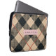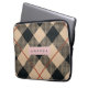 Personalized Modern Tan & Black Checkered Laptop Sleeve