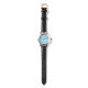 Make every second truly yours. This elegant watch combines a stunning blue dial with a luxurious rose gold frame and a sleek black leather strap—crafted to turn heads effortlessly.