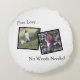 Add comfort and cuteness to your space with this custom round pillow, featuring space for two pet photos and the phrase “Pure Love… No Words Needed.” Perfect as a personalized pillow for animal lovers, a custom pet pillow, or a cozy gift for National Pet Day. Fully customizable—add your own photos and text to make it uniquely yours. Ideal for cat lovers, dog lovers, and all pet enthusiasts.