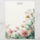 Pretty green and pink watercolor wildflowers adorn the side and bottom of this letterhead stationery. Personalize it with two or more lines of text for business or personal use.