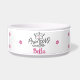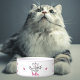 This bowl features a princess crown with custom cat name and pink paw prints.