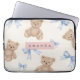 Personalized Teddy Bear & Blue Bow Pattern Laptop Sleeve