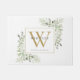 Elegante gepersonaliseerde waterverf bloemengroen monogram naam deurmat met een gouden monogram initiaal. Ontworpen door Thisisnotme©