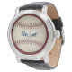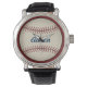 Een stijlvol horloge met een vintage honkbal decoratie. Personaliseer dit horloge door de naam te wijzigen. Het ontwerp is gemaakt naar originele kunst.