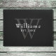 Elegante gepersonaliseerde initiaal monogram deurmat met uw initiaal en familienaam met uw ingestelde datum op een leigrijze achtergrond. Personaliseer met uw gegevens en kies de kleur naar uw wens.