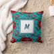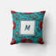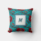Voeg een vleugje levendige luxe toe aan je huis met deze prachtige gepersonaliseerde monogram-werpkussen. Met een ingewikkeld botanisch patroon van felle rode bloemen en sierlijke motieven op een diepe tealblauwe achtergrond, combineert dit ontwerp perfect boheemse geest met elegante verfijning. Het midden heeft een schoon wit vierkant voor je eigen initiaal (hierna getoond met een stijlvolle blauwe M), waardoor het een echt uniek stuk is.