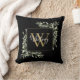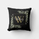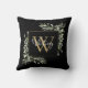 Elegante waterverf groene bladeren bloemige monogram naam kussensloop met een gouden initiaal op een zwarte achtergrond met uw naam in een stijlvol wit schrift. Ontworpen door Thisisnotme©