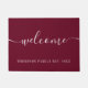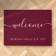 Elegante gepersonaliseerde familienaam deurmat met uw familienaam en uw oprichtingsdatum in een klassieke witte tekst op een bordeauxrode achtergrond met de boodschap "welkom" in een elegante witte scripttekst. Personaliseer met uw gegevens en kies de kleur naar uw wens. Ontworpen door Thisisnotme