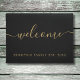 Elegante gepersonaliseerde familienaam deurmat met uw familienaam en uw oprichtingsdatum in een klassieke gouden tekst op een zwarte achtergrond met de boodschap "welkom" in een elegante gouden script tekst. Personaliseer met uw details en kies de kleur naar uw wens. Ontworpen door Thisisnotme©