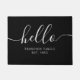 Elegante gepersonaliseerde familienaam deurmat met uw familienaam en uw oprichtingsdatum in klassieke witte tekst op een zwarte achtergrond met de boodschap "hallo" in een elegante witte scripttekst. Personaliseer met uw gegevens en kies de kleur naar uw wens. Ontworpen door Thisisnotme©