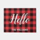 Persoonlijke familienaam met Hallo buffalo plaid Deurmat
