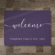 Elegant gepersonaliseerd familienaam doormat die uw familienaam met uw gevestigde datum bevat die in een klassieke witte tekst op een paarse achtergrond met het bericht "welkom"wordt geplaatst dat in een elegante witte manuscripttekst wordt geplaatst. Pas uw gegevens aan en pas de kleur aan de kleur van uw keuze aan. Ontworpen door: Thisnotme©