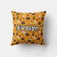 Voeg een feestelijk tintje toe aan uw huis met dit gepersonaliseerde Halloween-kussen met een leuk spookachtig patroon van zwarte katten, petten van heksen, schedels, snoep en manen. Pas het aan met jouw naam (voorbeeld: Evelyn) voor een unieke en speelse decoratie. Perfect als een Halloween-cadeau, seizoensgebonden interieur of een gezellig accentkussen.