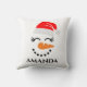 Gepersonaliseerde kerstsneeuwman met aangepaste naam Sierkussen.